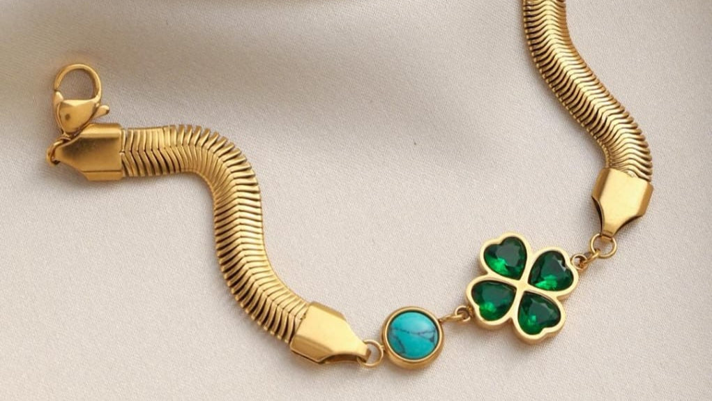 22K Gold Plated Clover & Star AD Kada Bracelet | Magnetic Lock, Anti-Tarnish Stainless Steel