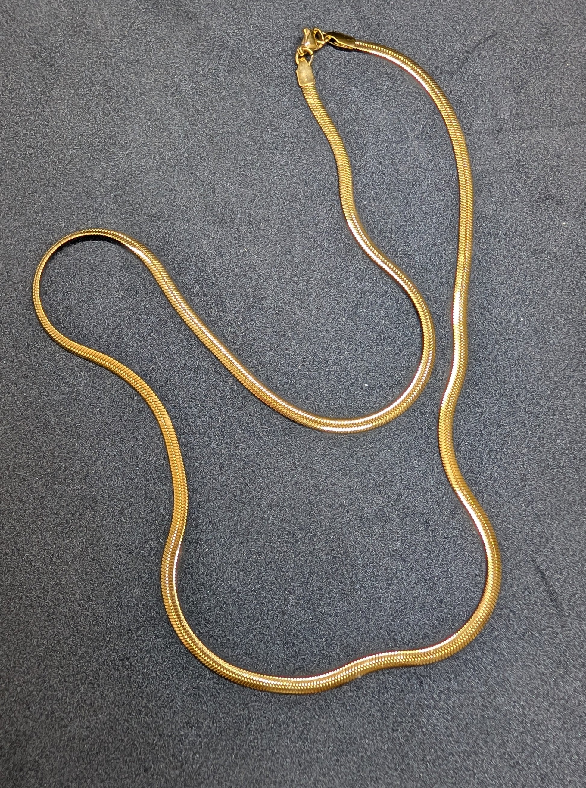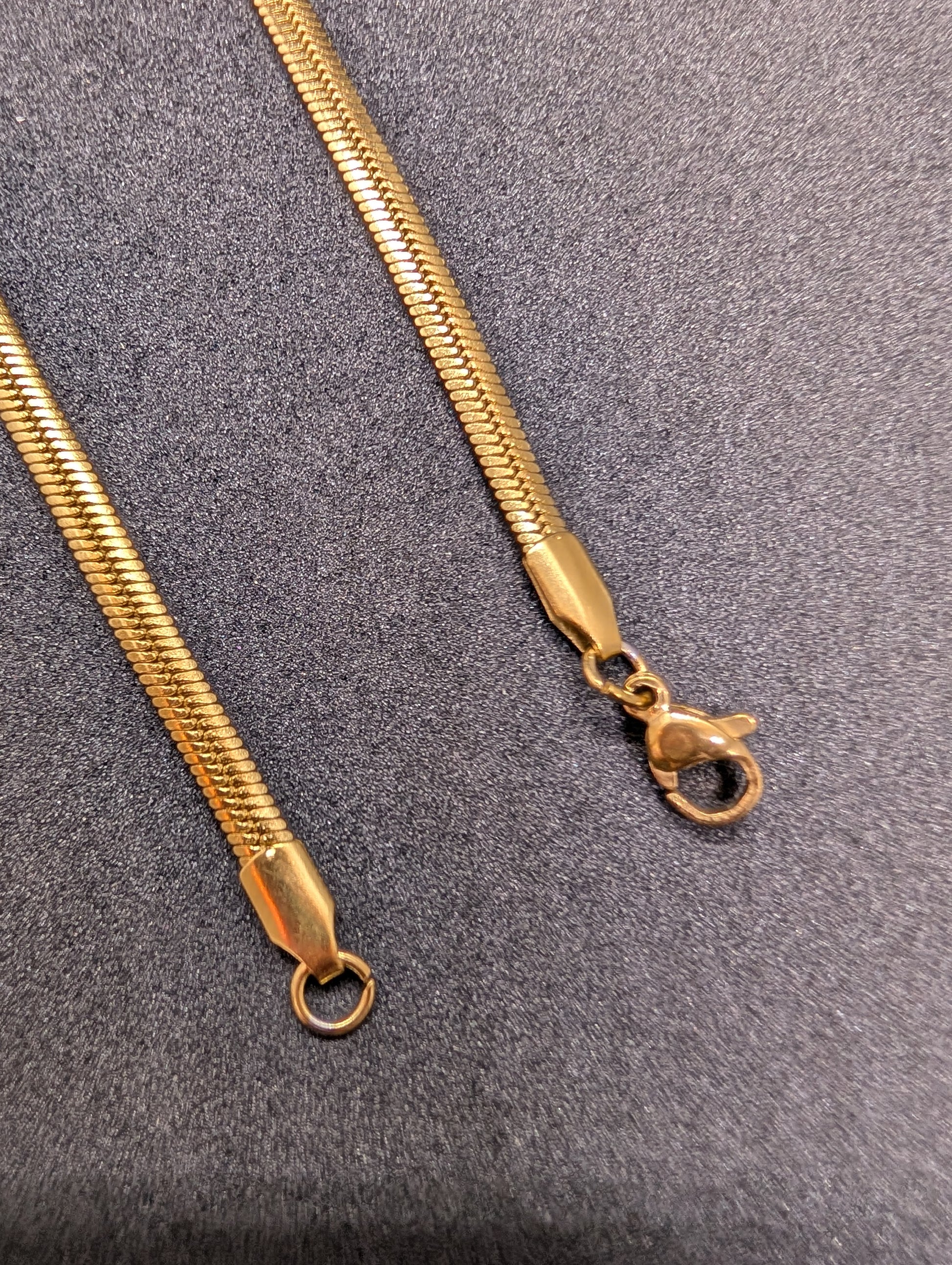18K Gold Plated Men's Herringbone Snake Chain Necklace | Flat Stainless Steel Classic Style