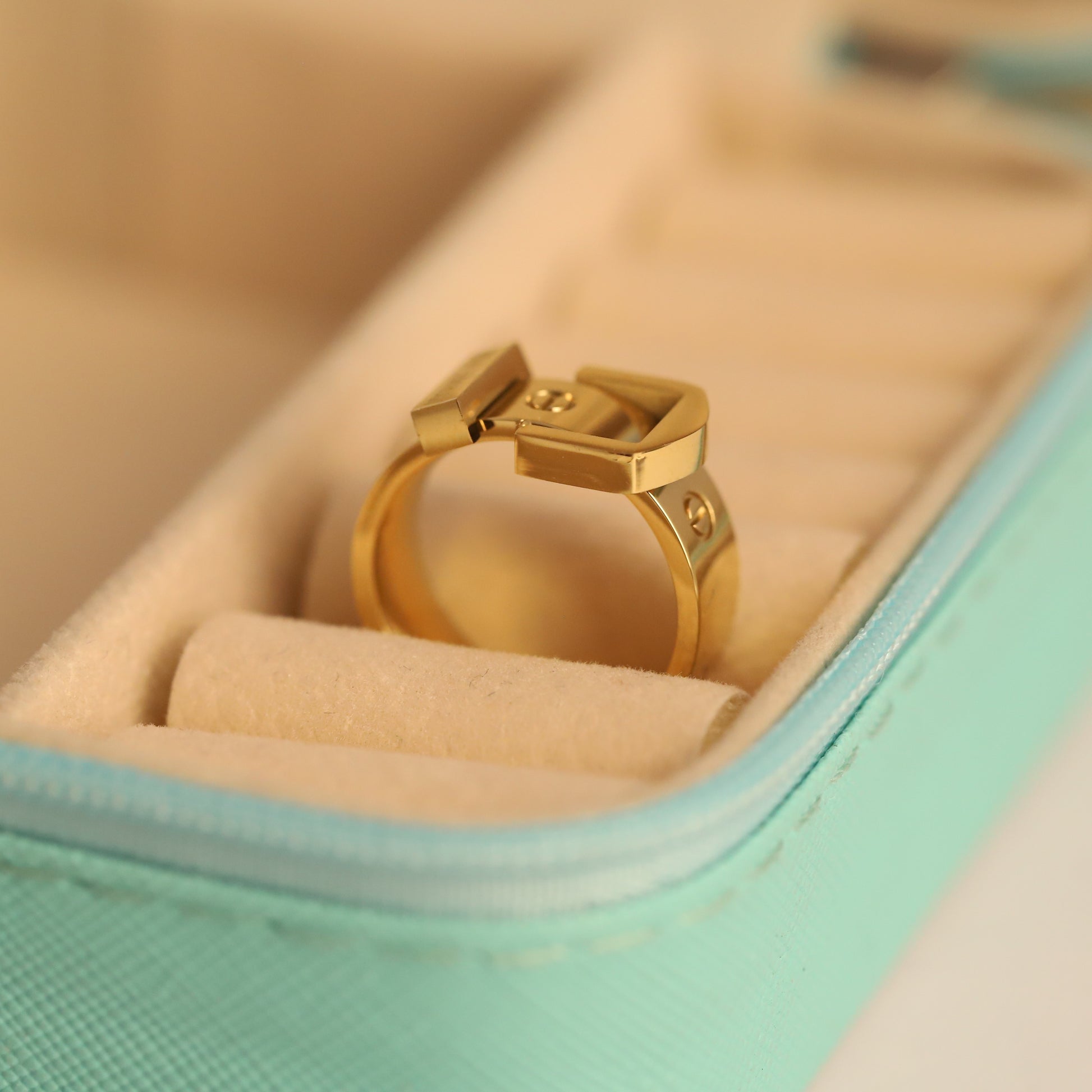 Crafted from durable stainless steel and richly plated in 22K gold, this ring is designed for both enduring beauty and everyday practicality. It's built to be waterproof and tarnish-resistant, ensuring its radiant shine lasts through daily wear without worry. Perfect for those who love bold, fashion-forward accessories, this belt buckle ring is an ideal piece to elevate any casual or dressed-up ensemble.