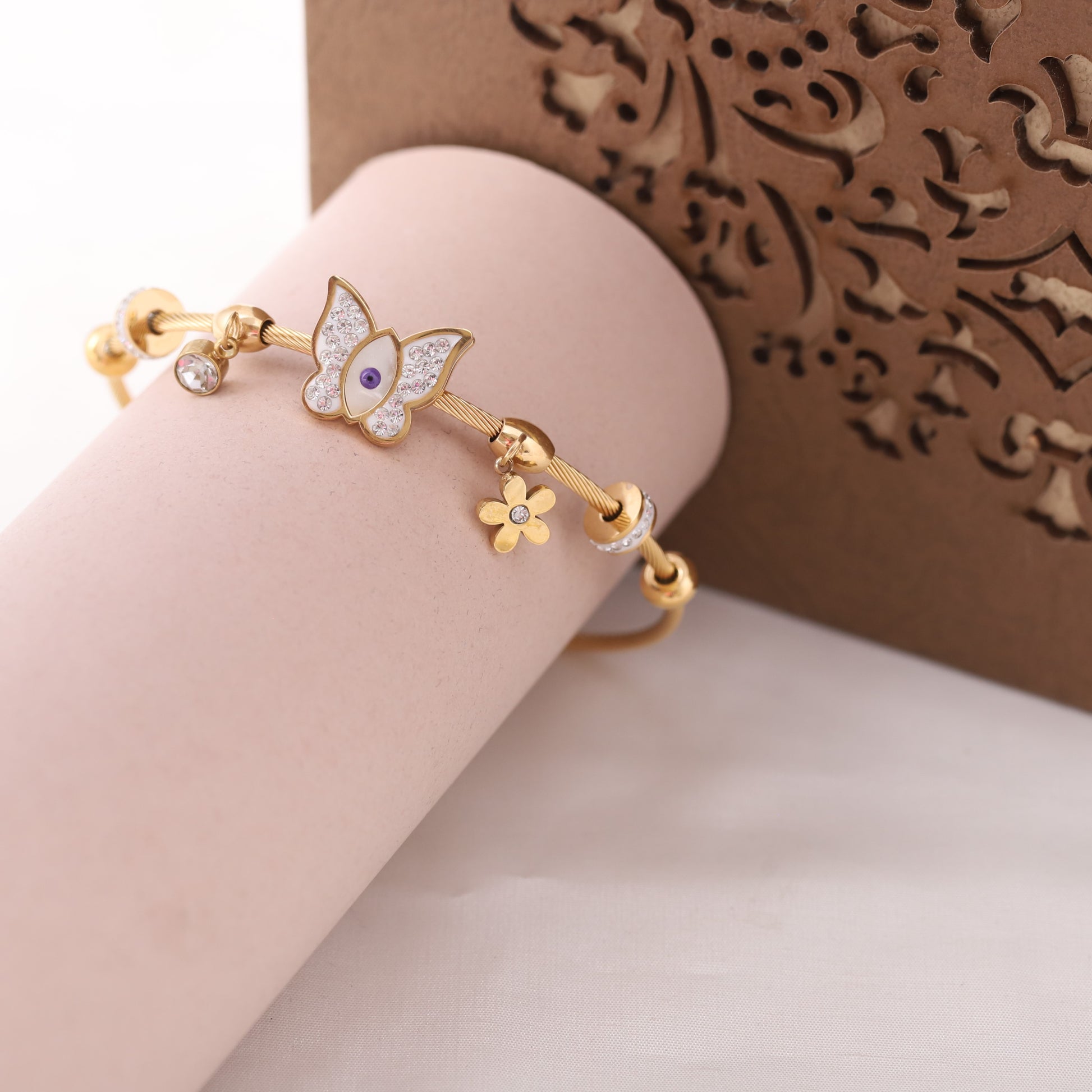 22K Gold Plated Butterfly Evil Eye Bracelet