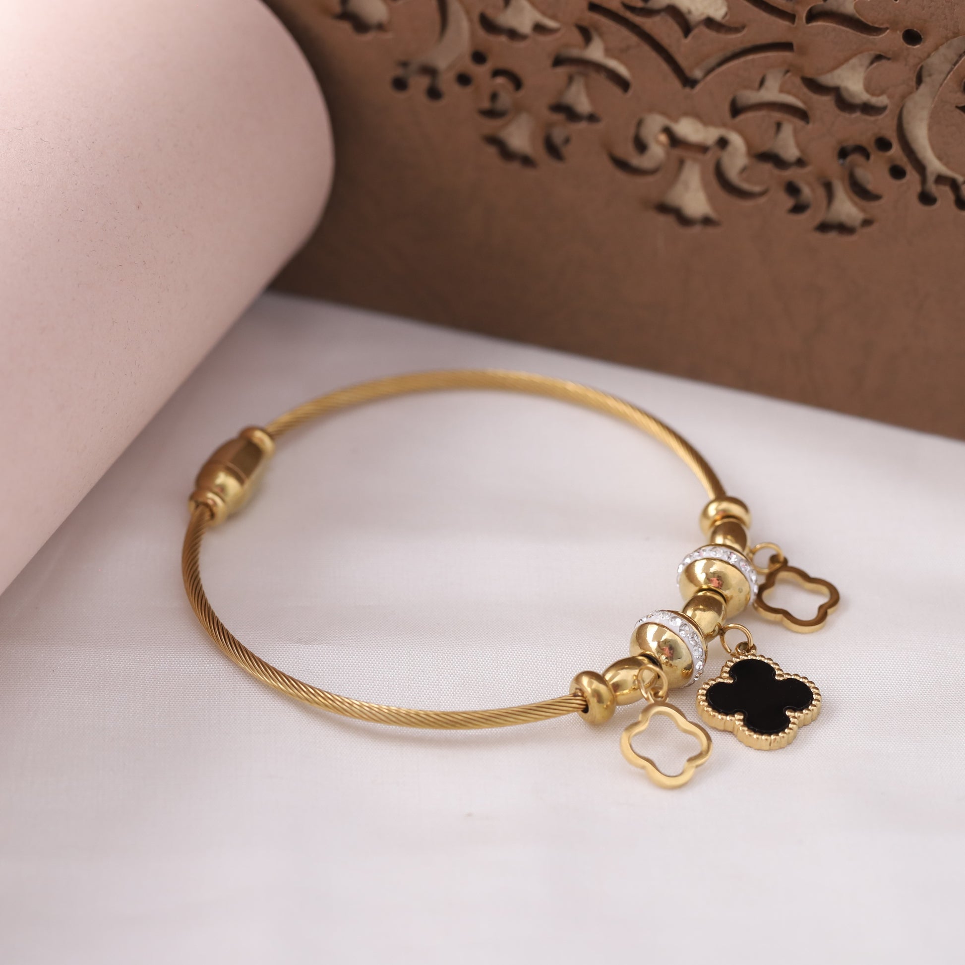 22K Gold Plated Stainless Steel Clover Charm Kada Bracelet | Magnetic Lock & Anti-Tarnish