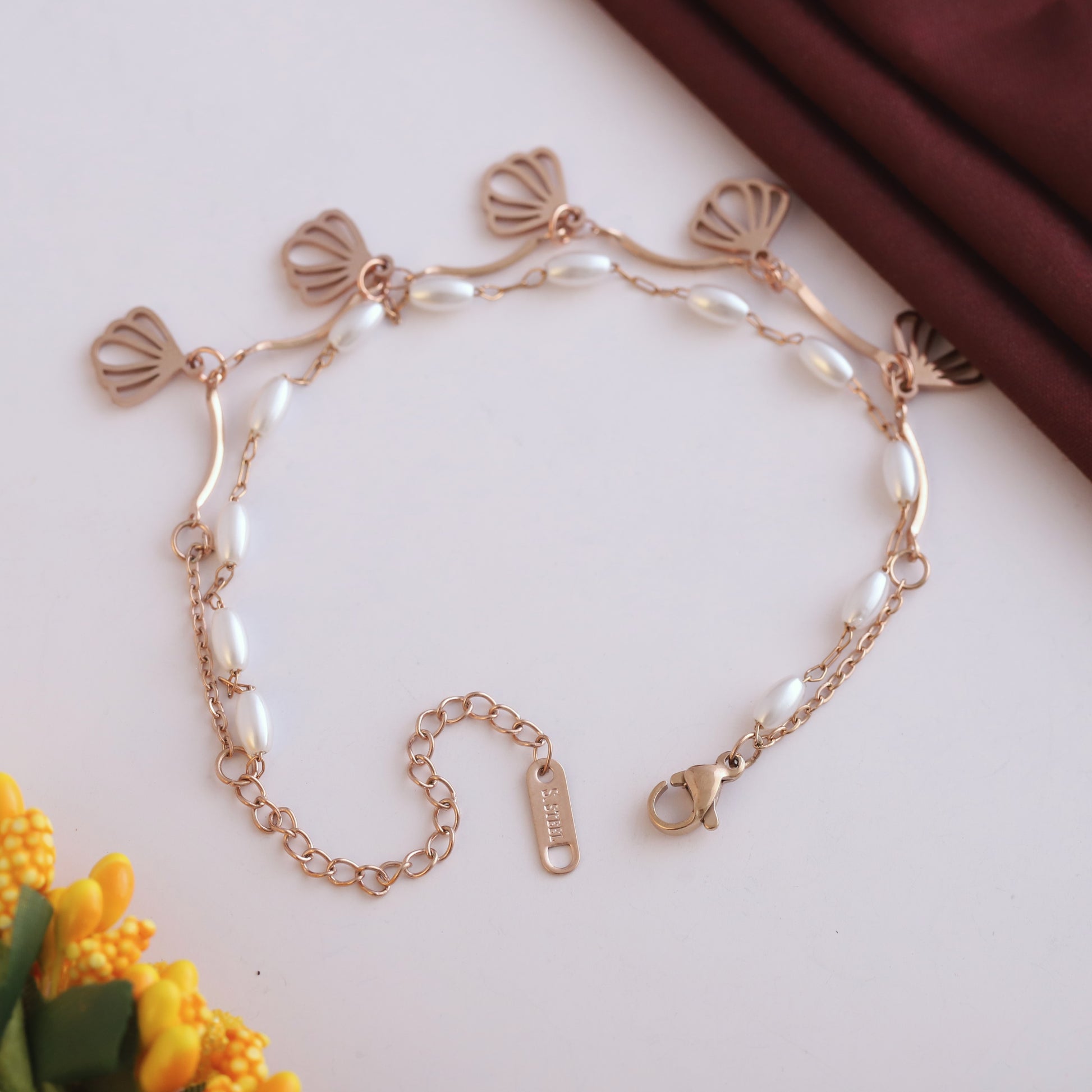 Adorn your wrist with this stunning anti-tarnish bracelet, crafted from durable stainless steel and finished with a luxurious 18k rose gold plating. This unique piece features a double chain design, one intricately detailed with antique evil eye charms, and the other a delicate pearl chain, offering a blend of protection and elegance. It measures 16 cm (6.5 inches) with an additional 5 cm adjustable chain, providing a versatile fit up to 21 cm. Each bracelet undergoes rigorous quality control, ensuring a top-quality, fade-resistant, and anti-allergy accessory.