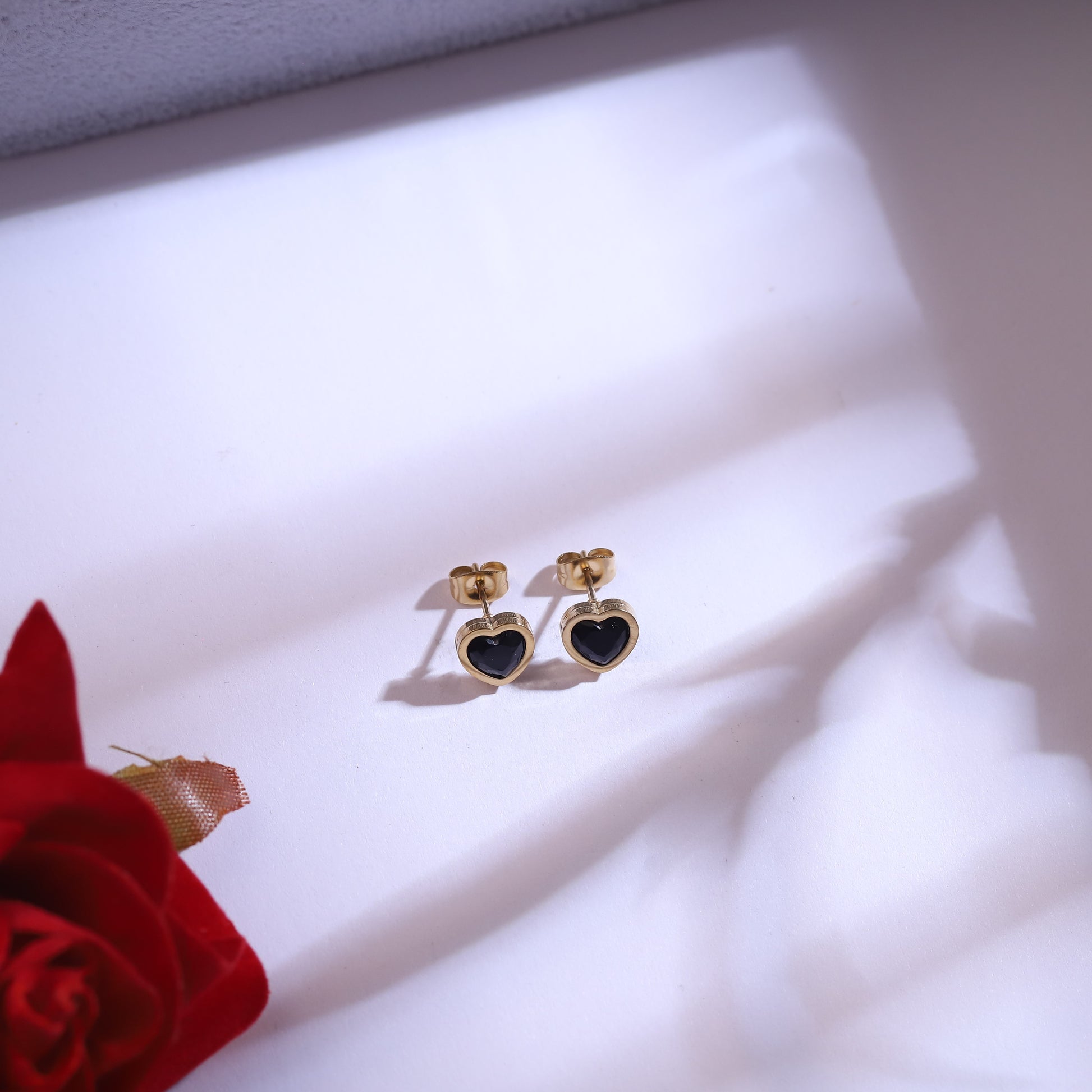 Ideal for gifting to a loved one or as a delightful treat for yourself, this versatile jewelry set is perfect for everyday wear, special dates, or as a thoughtful anniversary present. The bold black heart against the warm gold-tone creates a striking contrast that is both modern and timeless.