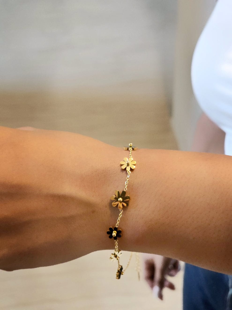Add a touch of delicate charm to your wrist with this flower chain bracelet. Crafted from durable stainless steel and coated with 22K gold plating, it's not only beautiful but also waterproof, making it perfect for daily wear without worry.