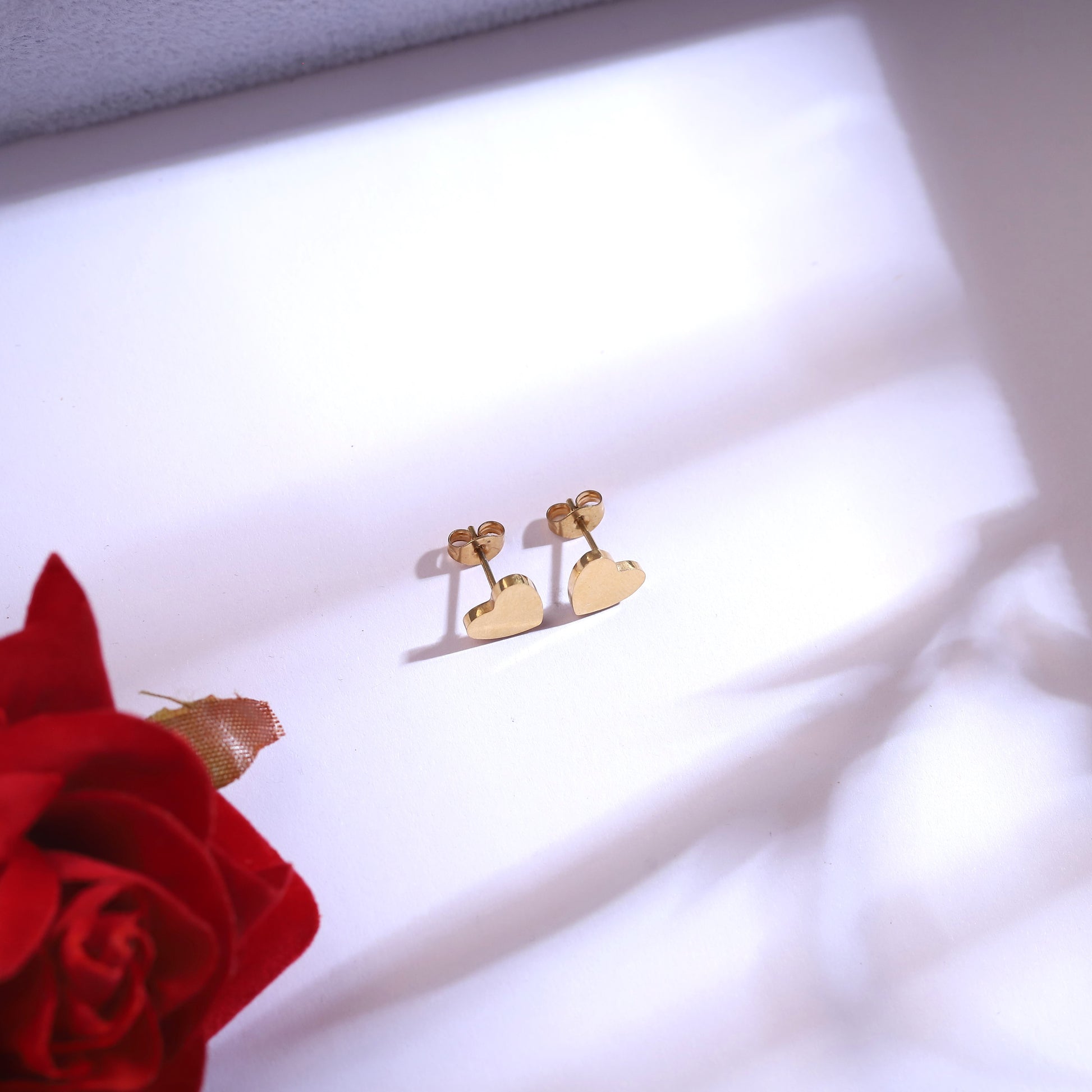 Earrings: Simple gold-toned heart-shaped stud earrings.