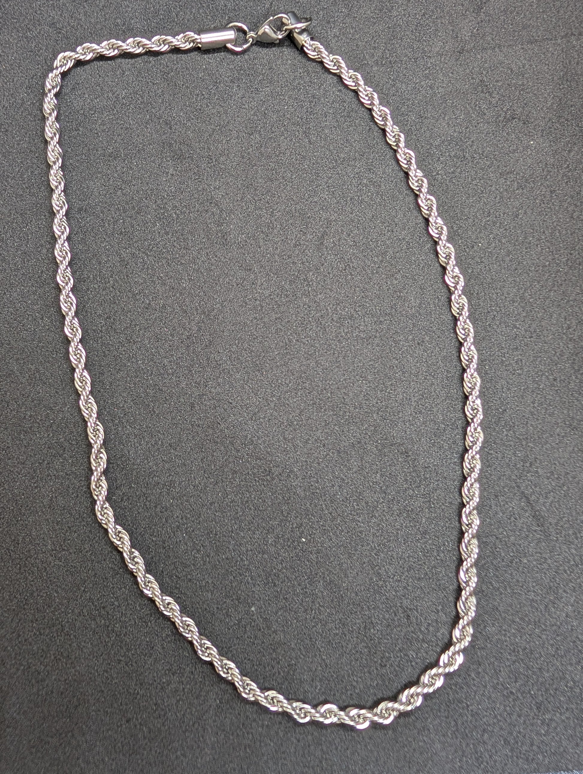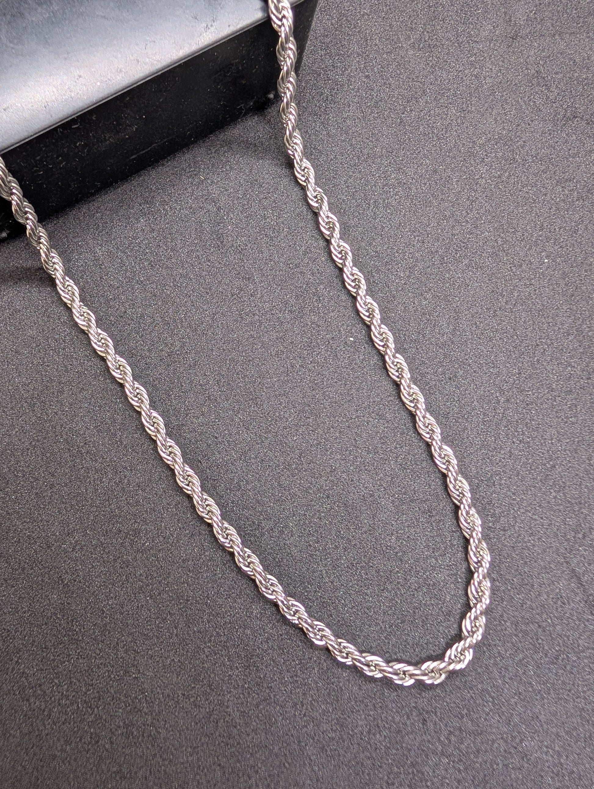 Elevate his everyday style with the Men's Classic Silver-Tone Rope Chain Necklace. This essential piece of men's jewelry features the highly popular twisted rope design, known for its strength, texture, and brilliant shine.