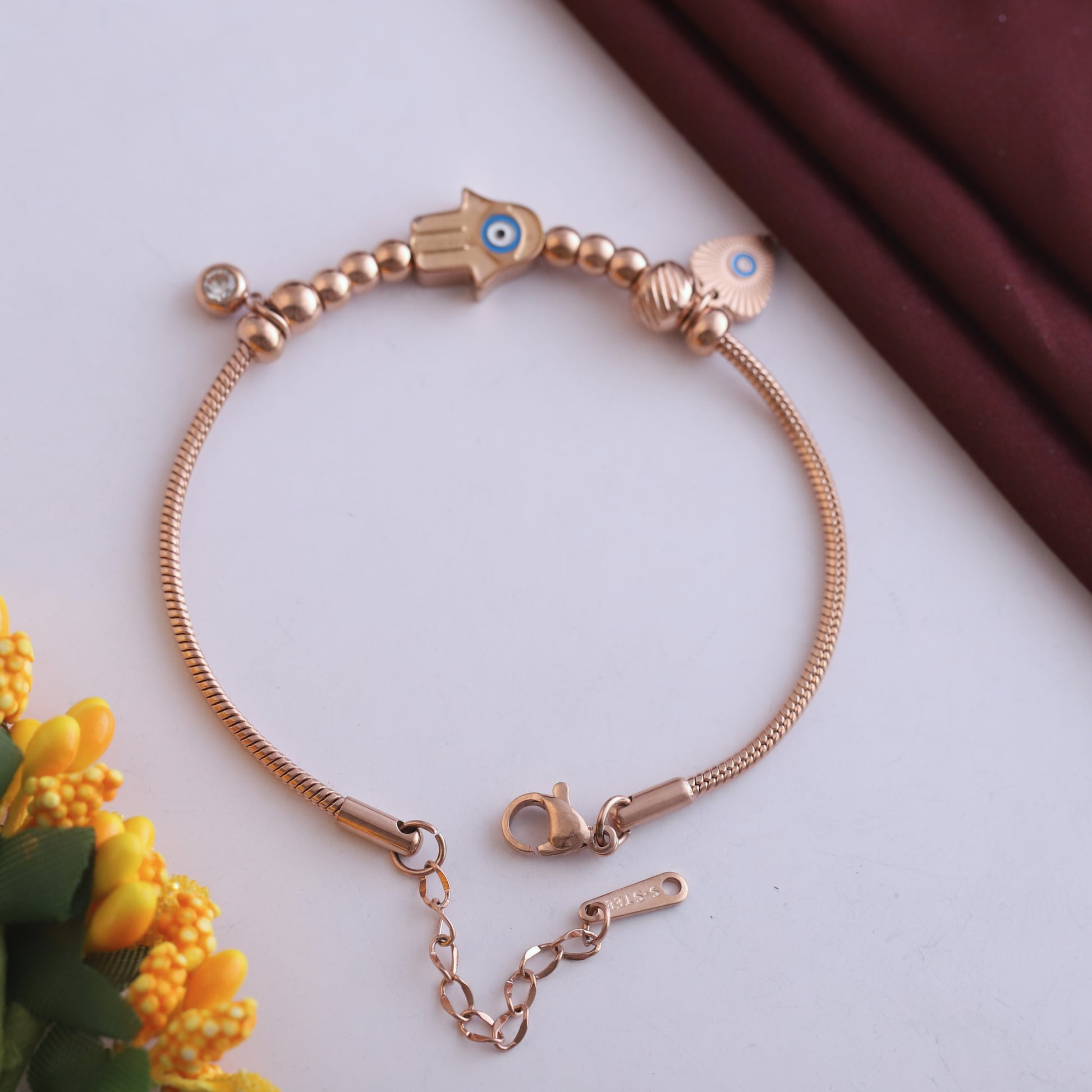 Rose Gold Hamsa Hand Bracelet - Evil Eye Charm & Delicate Chain