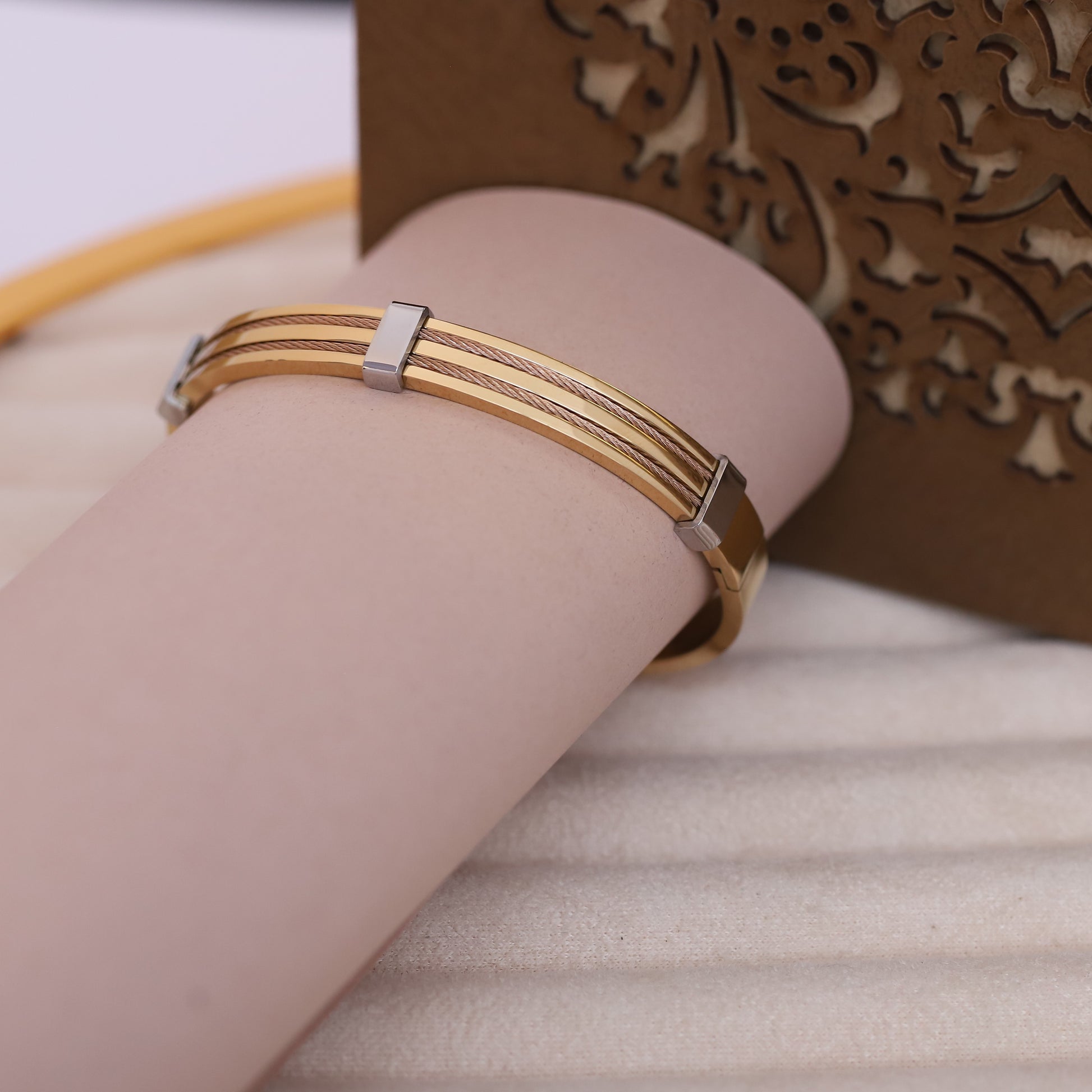 Two-Tone Cable Detail Gold Bangle for Men | Modern Stainless Steel Bracelet